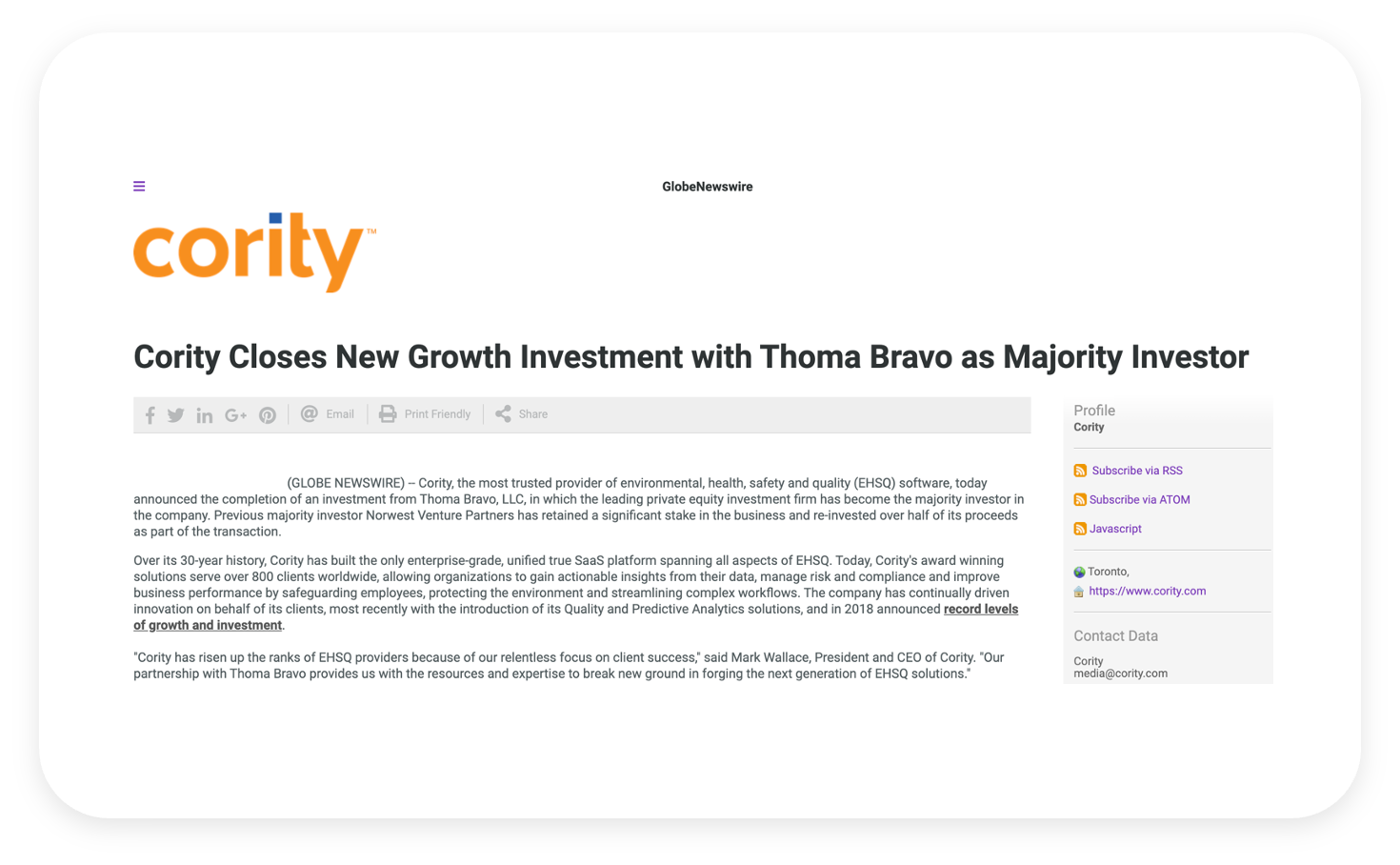 Cority | Acquired by Thoma Bravo