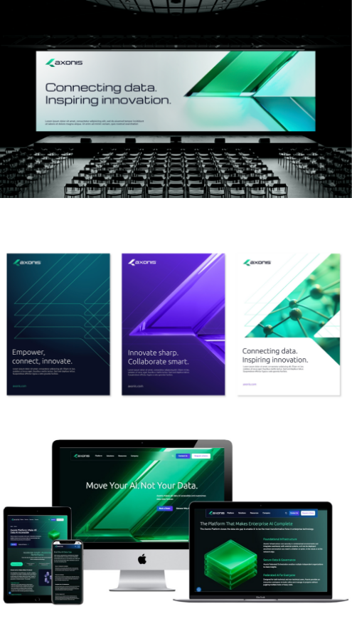 Bluetext developed the Axonis name, logo, corporate visual identity, and messaging framework to launch a dynamic new identity as a leader in federated AI. Anchored by Axonis’ brand line—“Move Your AI. Not Your Data.”—the brand platform emphasizes secure, compliant, and decentralized AI operations. Bluetext aligned all visual and verbal elements around core principles of data sovereignty, speed, and adaptability, establishing a narrative that is modern, authoritative, and deeply integrated with the platform’s technical capabilities.